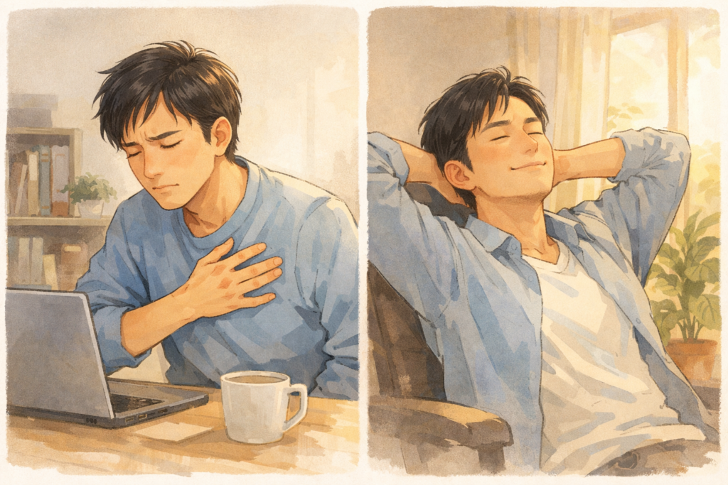 👉 無意識に“浅く速い呼吸”になります